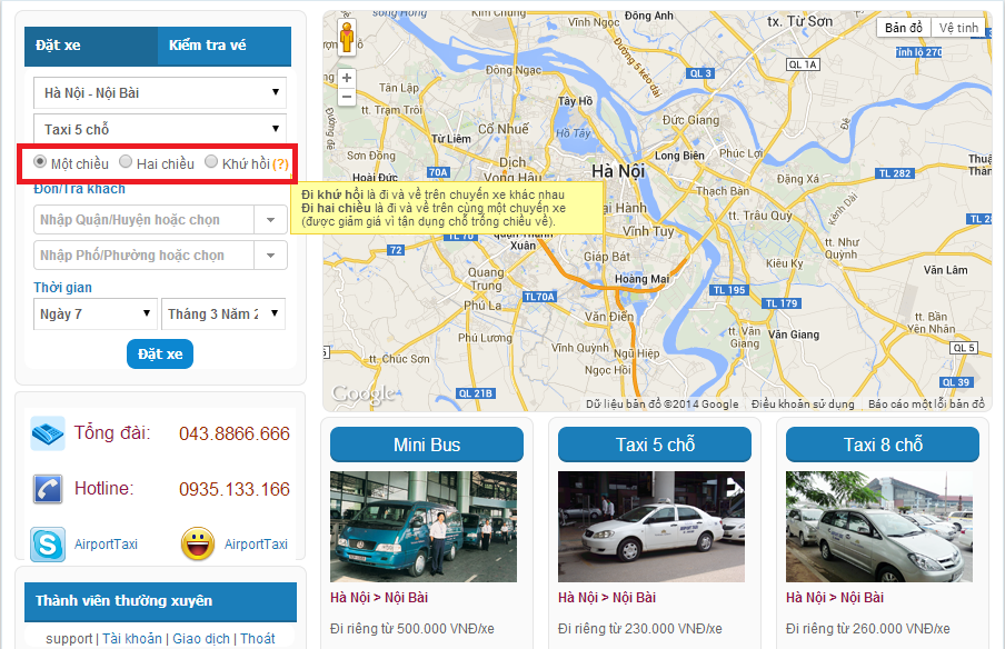 Step 3: Select 1 of 3 opstions: One-way, Two-way (aplly for the ride to airport then return , in same taxi) OR Round-trip