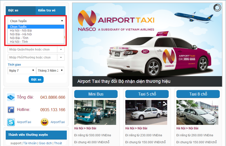 Bước 2: click vào mục “Chọn Tuyến” và chọn tuyến thích hợp: