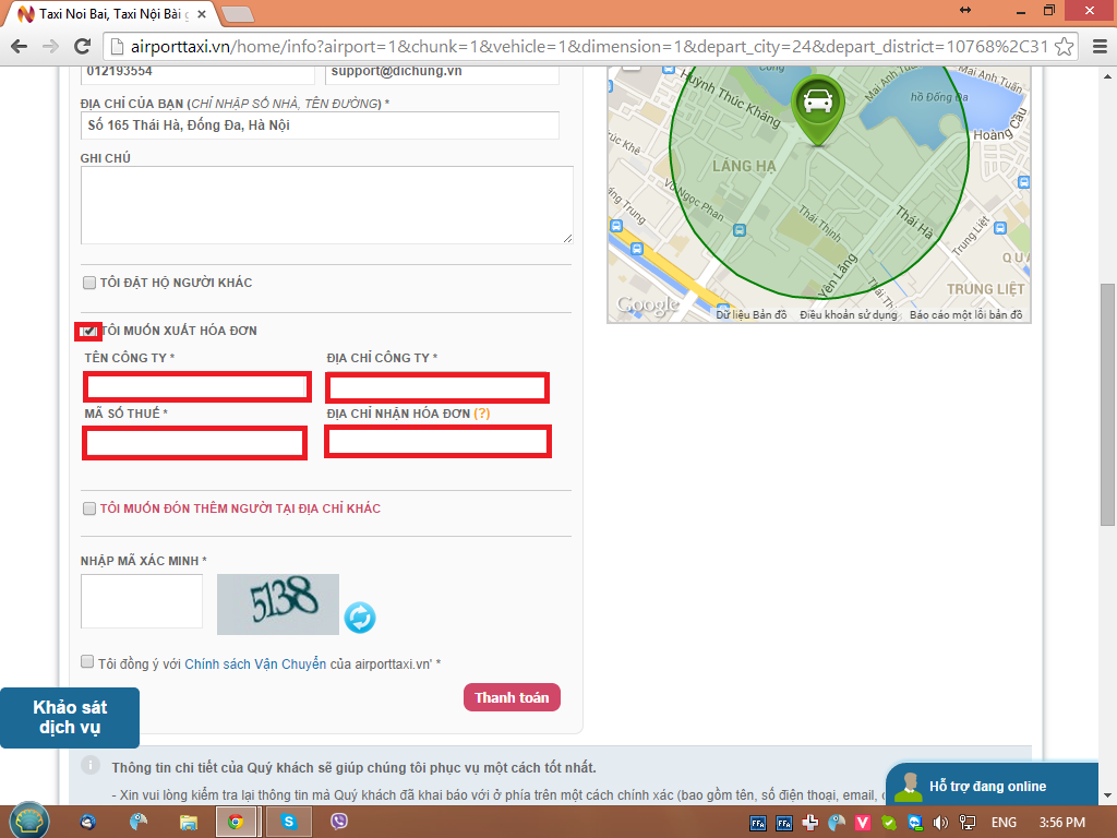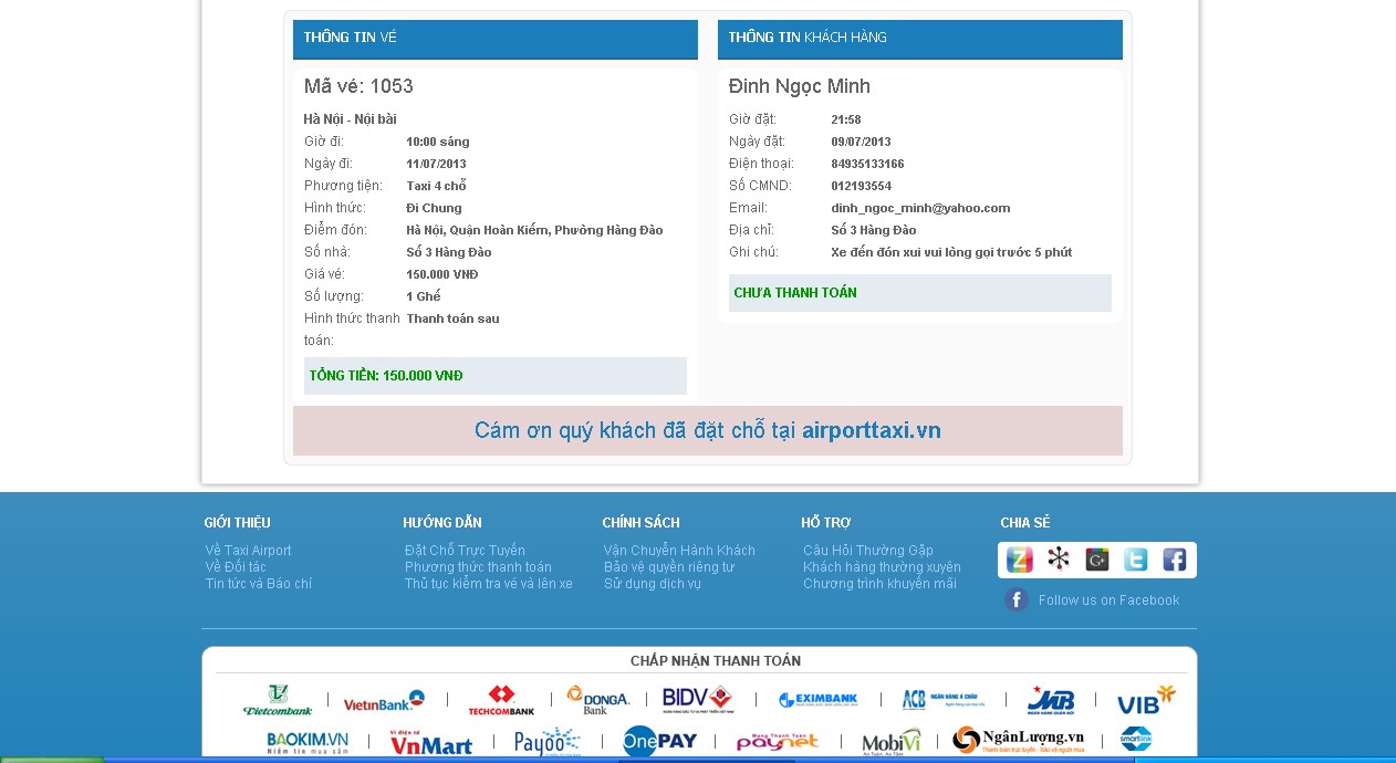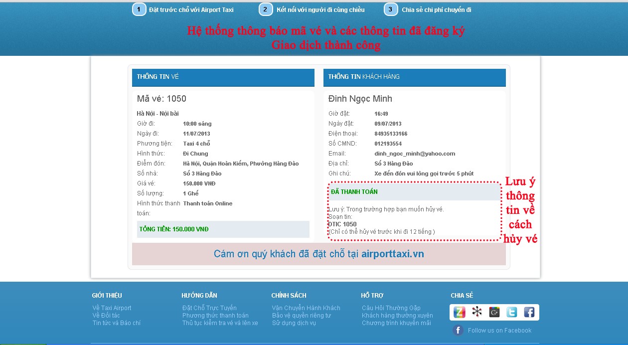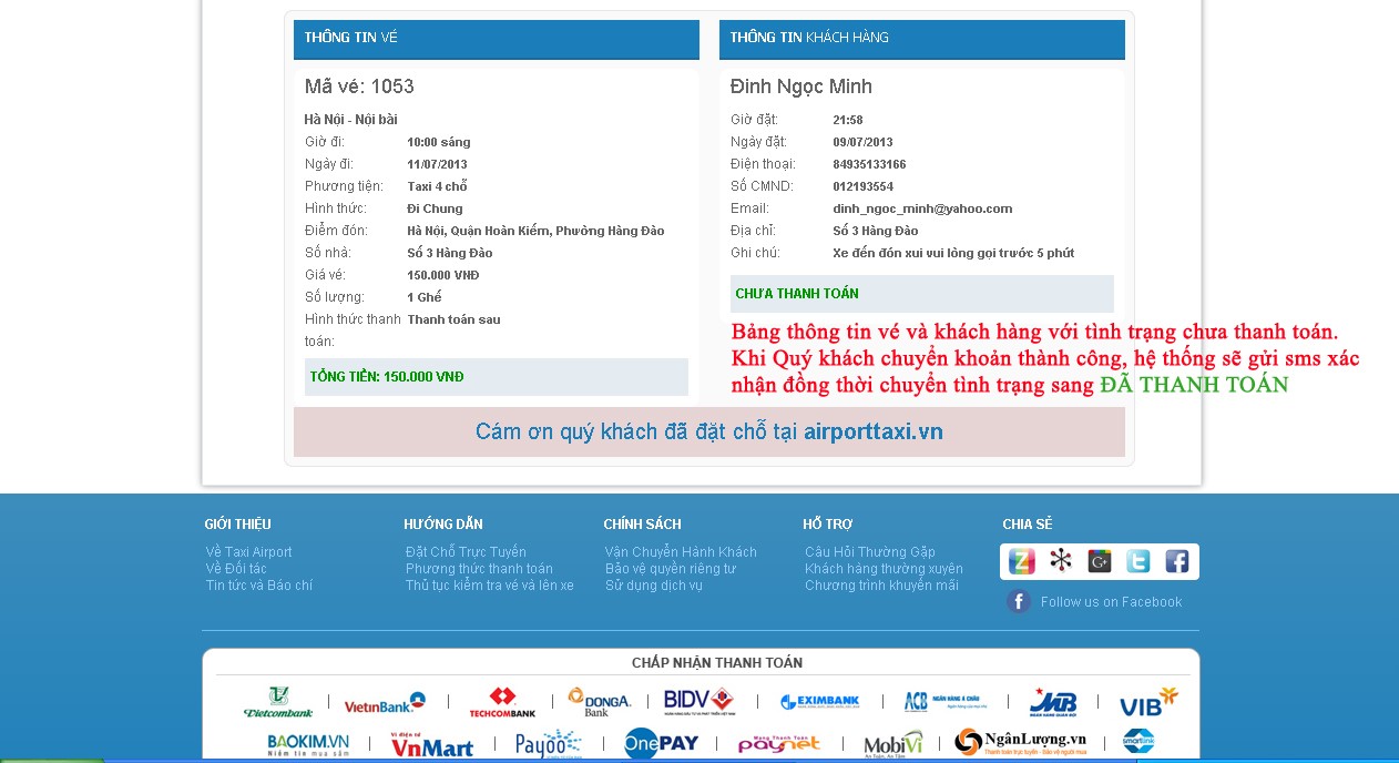 Bước 8: điền thông tin khách hàng: tên, số điện thoại liên hệ, số chứng minh thư hoặc hộ chiếu, địa chỉ email, địa chỉ đón chính xác và các ghi chú nếu có: