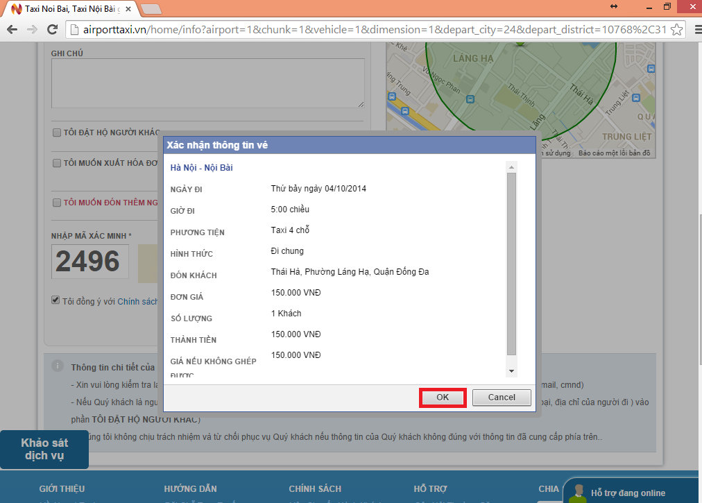 Bước 10: xác nhận lại thông tin vé một lần nữa, nếu đúng chọn “Ok”, nếu chưa đúng, chọn “cancel” để quay lại bước nhập thông tin: