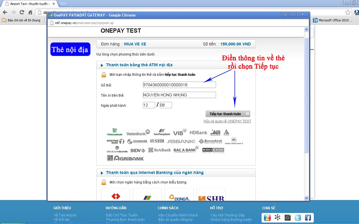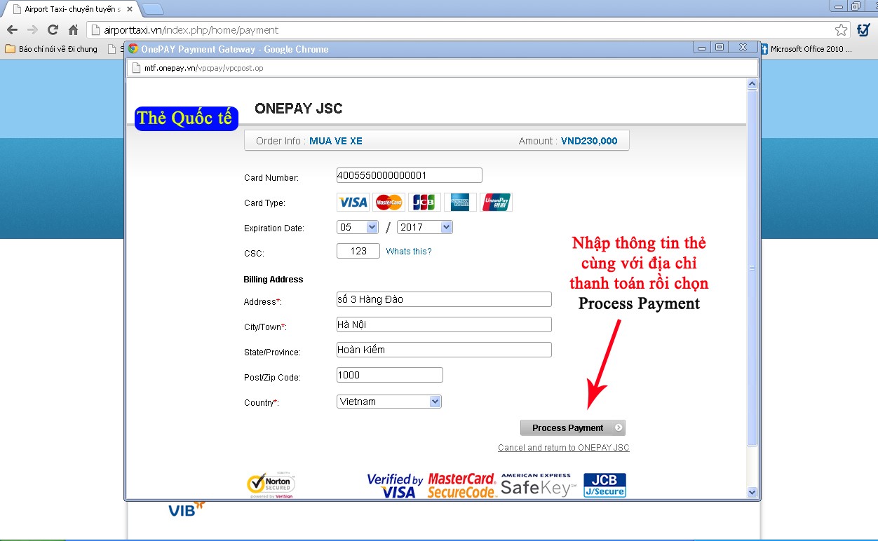 + Nhập thông tin thanh toán: