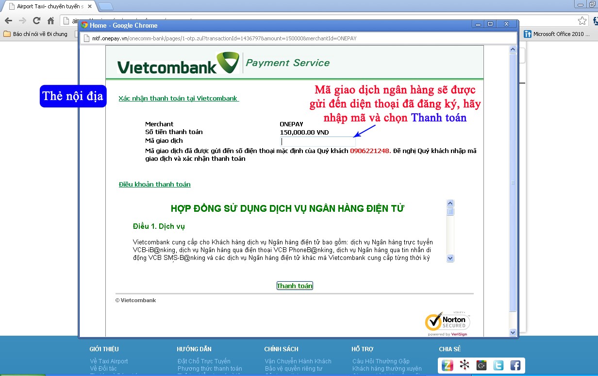 Bước 9: Nhập mã xác minh, chọn “đồng ý” và nhấn vào nút “Thanh toán”: