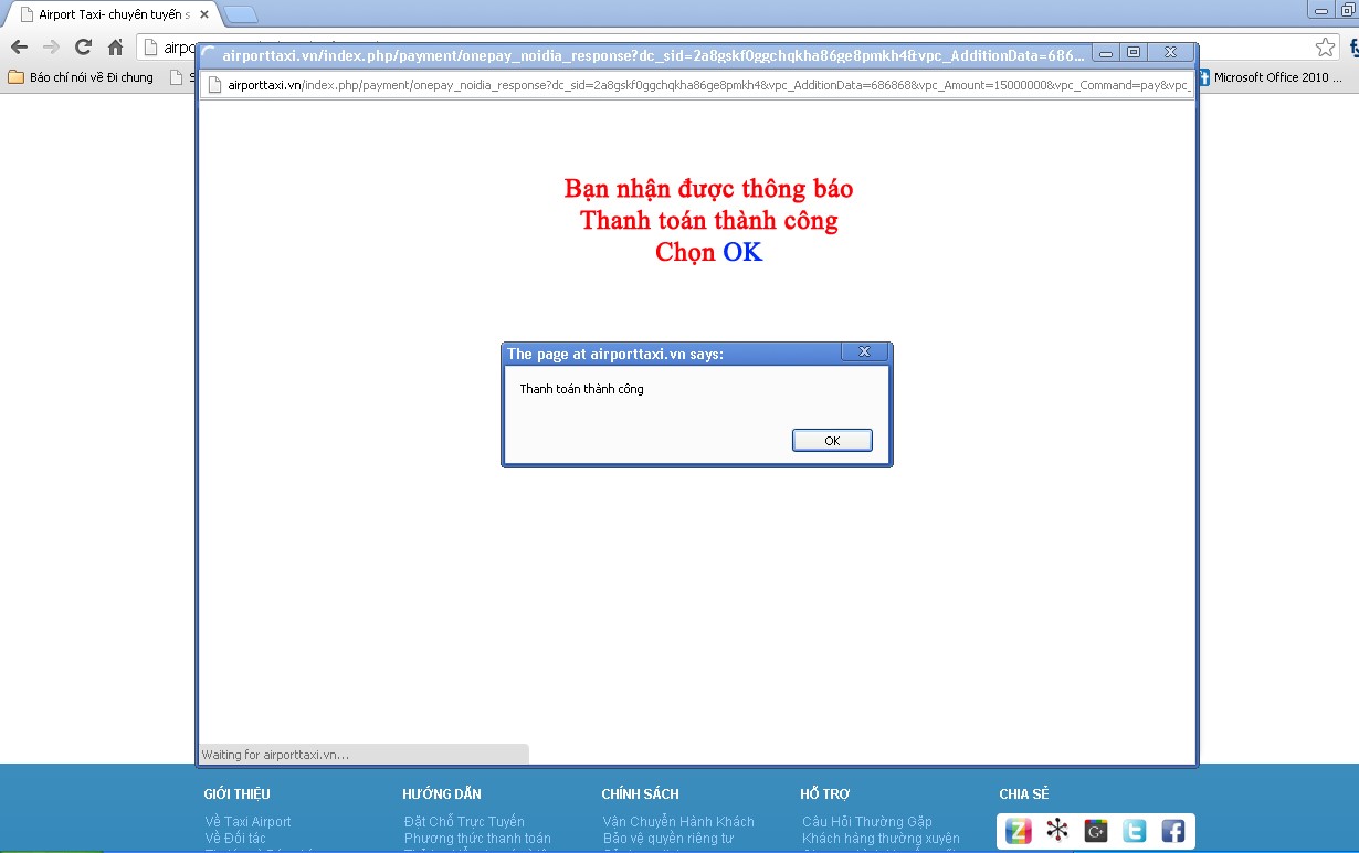 + Thông báo giao dịch thành công: