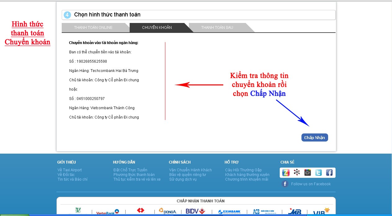 Thanh toán chuyển khoản:
